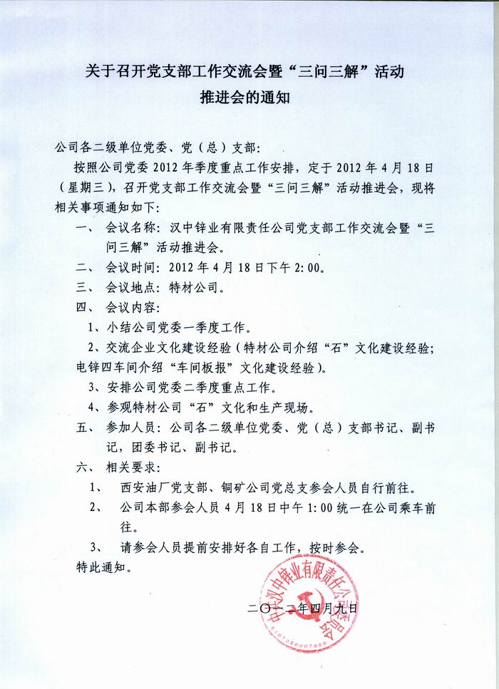 召開黨支部工作交流會暨三問三解活動推進會通知
