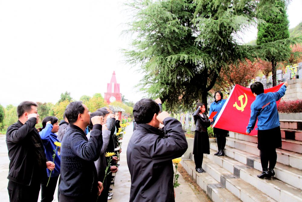 青山環繞,綠樹繁茂。大家懷著崇敬的心情,來到了莊嚴肅穆的勉縣烈士陵園,在革命烈士劉彩鳳墓前敬獻花籃鞠躬、默哀、聆聽革命烈士事跡,大家向烈士獻花致敬在高高聳立的烈士紀念碑前,全體黨員面對黨旗重溫了入黨誓詞,堅定理想信念,筑牢初心使命。