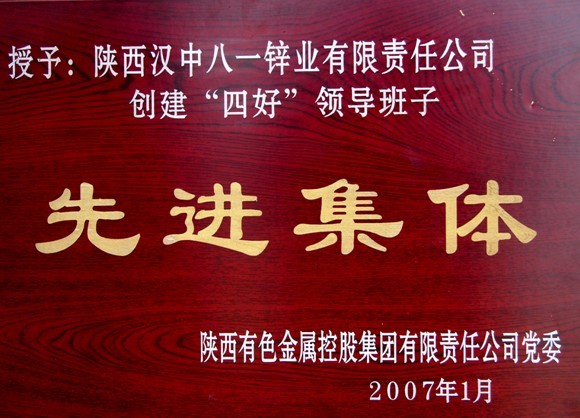 2007年陜西漢中八一鋅業(yè)有限責(zé)任公司創(chuàng)建“四好”領(lǐng)導(dǎo)班子先進(jìn)集體 -