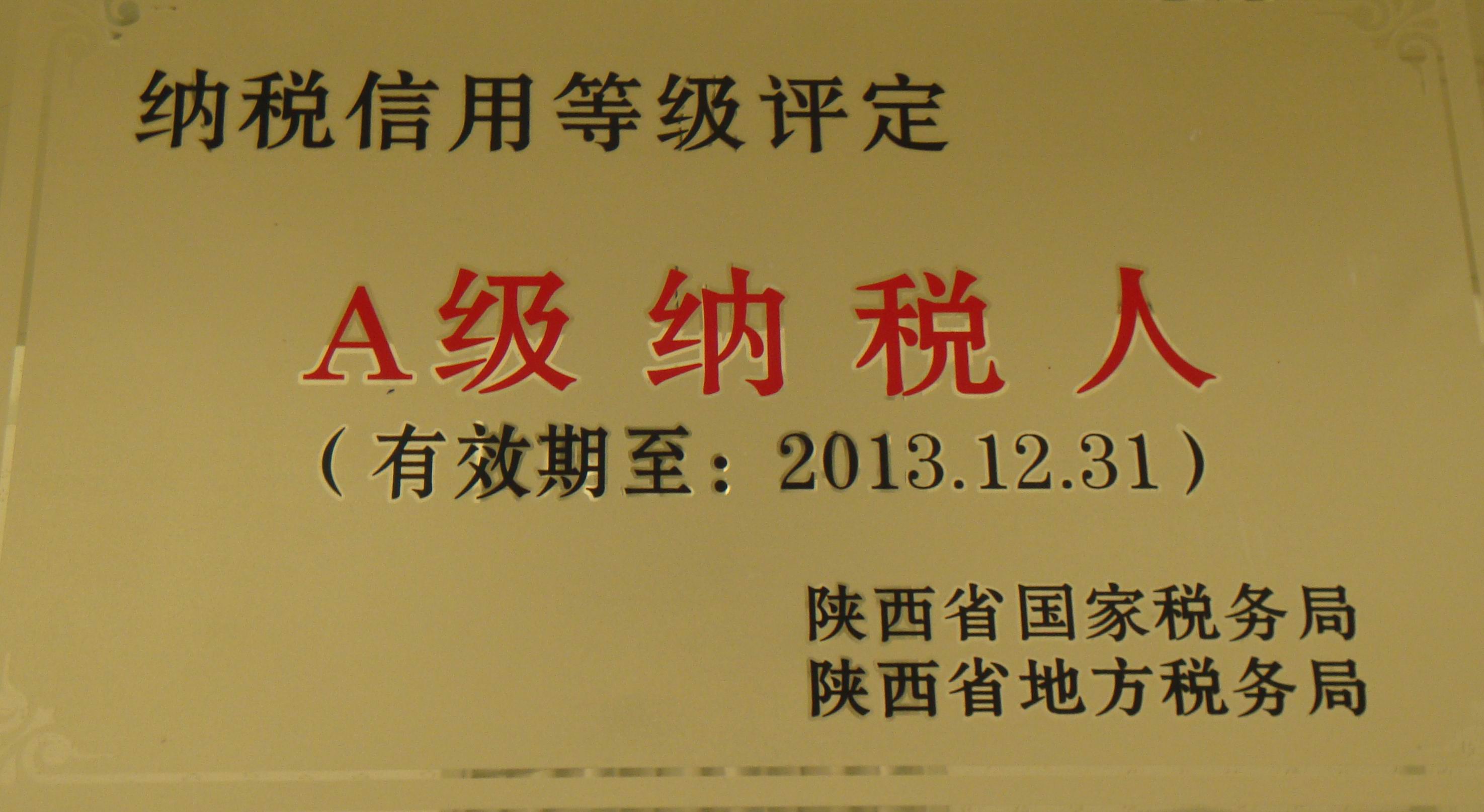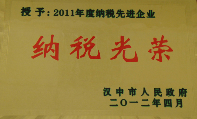 2012年榮獲漢中市“納稅先進(jìn)企業(yè)”稱號(hào) -
