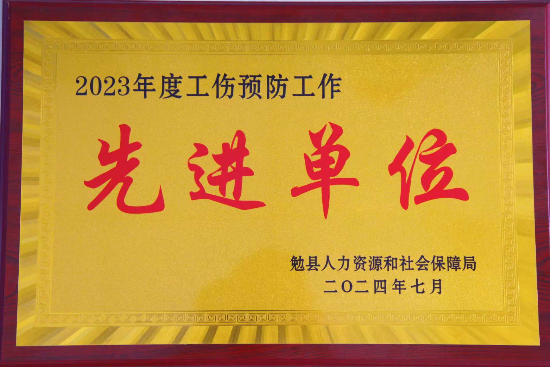 公司榮獲2023年度工傷預(yù)防先進(jìn)單位 -