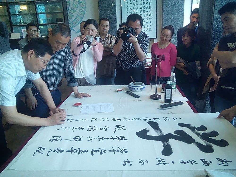 下午3點許,聯誼活動正式開始了,漢中鋅業銅礦公司經理王淵第一個閃亮登場,以倉勁有力的顏體楷書一氣呵成,“學黨章黨規、學系列講話,做合格黨員”一副書法作品躍然紙上,引來疊疊贊嘆聲和陣陣拍照聲。隨后,公司知名書法家劉志勇、沈華、劉文普、晏文豪等陸續閃亮登場,特別是來自公司總部硫酸車間的書法愛好者李丹以左右手輪番揮毫的特色,引來一片贊嘆聲。大家磨拳擦掌,紛紛登臺亮相,都以公司正在開展的“兩學一做”學習教育活動等相關內容為主要書寫題材。或一筆一畫,從容自如;或龍騰虎妖,蕩氣回腸;或蜻蜓點水,溫文爾雅;或筆走龍蛇,曲折蜿蜒;或左手揮毫,別具特色……“三嚴三實”“信念堅定、為民服務、勤政務實、敢于擔當、清正廉潔”“四講四有”“基礎在學、關鍵在做”“讓資源更有價值”“愛我中華,興我鋅業”等這些文字都被公司“書法家”們變成了一幅幅各具特色的書法作品,這些生動活潑的作品,剛蓋完作者的印章,就被現場的幾位支部書記哄搶一空,他們琢磨著要把這些作品裝裱后掛在黨員活動室,供大家學習、觀賞。